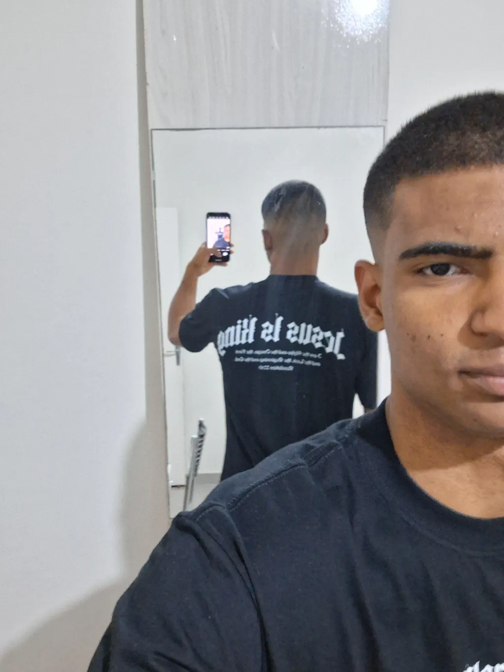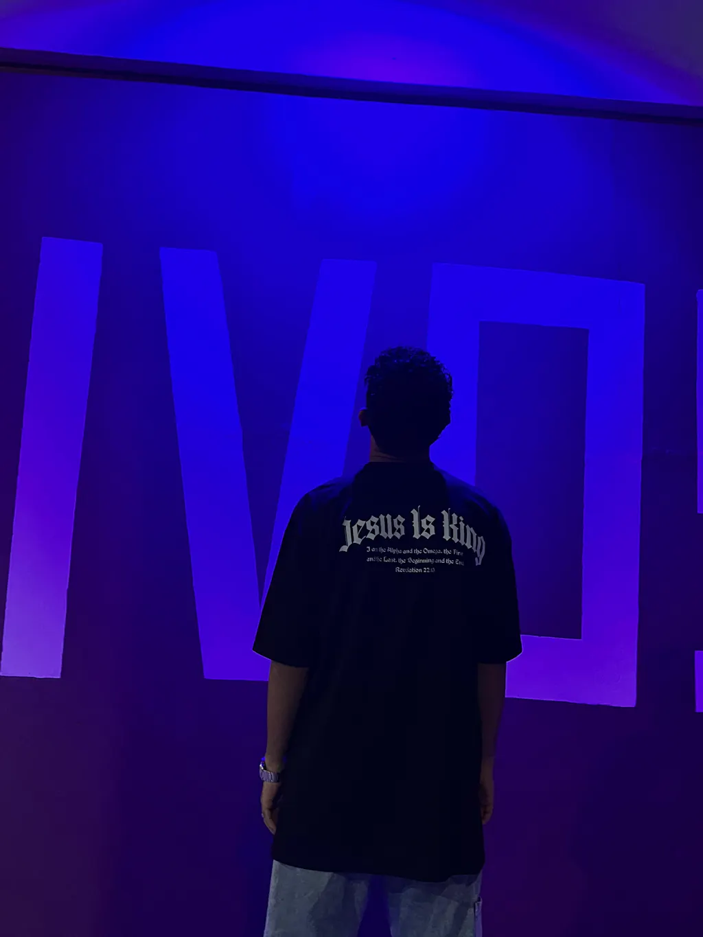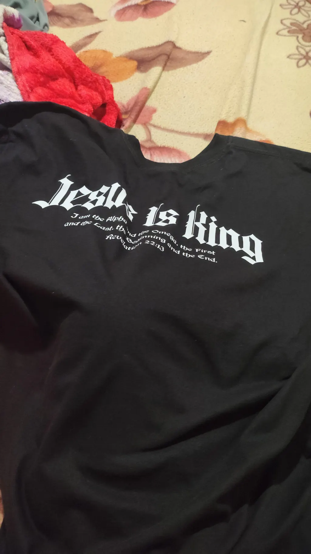 Esta camiseta Oversized exibe a poderosa mensagem "Jesus Is King" (Jesus é Rei), acompanhada do impactante versículo de Apocalipse 22:13: